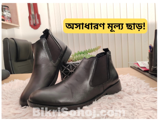 অরজিনাল লেদার বুট। বিশেষ কারণে মূল্য এত পরিমাণে ছাড় দেওয়া হয়েছে। এত কম দাম অরজিনাল লেদারের বুট কোথাও পাবেন না।