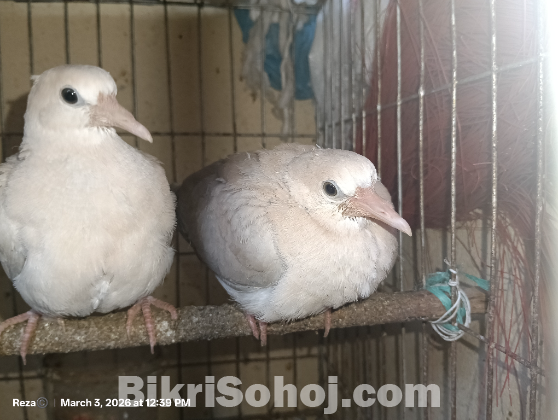 জাত: অস্ট্রেলিয়ান ঘুঘু (Australian Dove)। রঙ: মেরুন ও অফ-হোয়াইট শেডের চমৎকার মিশ্রণ। শারীরিক অবস্থা: সম্পূর্ণ সুস্থ, সবল এবং কোনো রোগবালাই নেই।