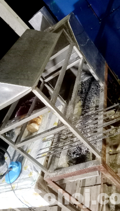 যেকোনো হোটেল রেস্টুরেন্ট এর জন্য উপযোগী কাবাব এর ট্রে -উপরের সম্পন্ন এস এস সিট দিয়ে ফ্রেম তৈরি করা-লম্বায় ৪২" এবং চওড়া ১৩"! নিচে অংশে এমএস অ্যাঙ্গেল দিয়ে বানানো ! সাথে আছে ৭ পিস এস এস স্টিক,