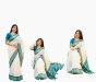 ১৪ হাত ব্লাউজের পিস সহ ক্রিম এবং সী গ্রিন কম্বিনেশন নরম সিল্ক শাড়ি....