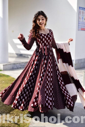 ♥চায়না প্রিন্ট গাউন থ্রি-পিস♥