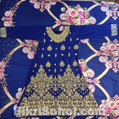 জর্জেট কাপড়ের উপর জরি সুতার এমব্রয়ডারি করা ।