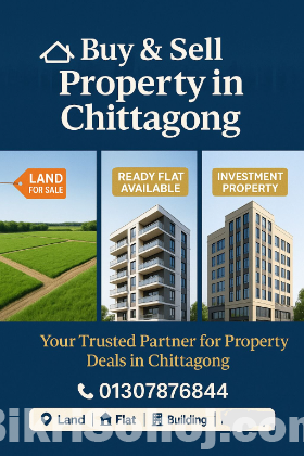 আমরা চট্টগ্রামে দীর্ঘদিন ধরে *১০০% সফলতার সাথে* জমি, ফ্ল্যাট ও ভবন *ক্রয়-বিক্রয়* সম্পন্ন করে আসছি।