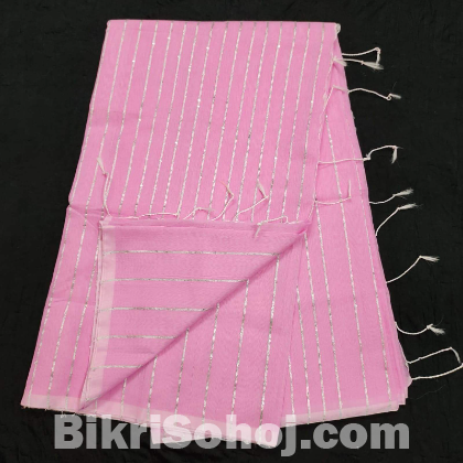 হাফসিল্ক চুমকি শাড়ি। আঁচল সহ সম্পূর্ণ শাড়িতে চুমকির কাজ করা আছে।
