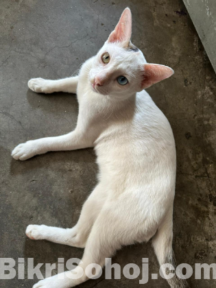 ওর নাম লুসি। খুব প্লে ফুল একটি ছেলে বিড়াল। ওর বয়স ১০-১১ মাস হবে। ওজন ৩-৩.৫ কেজি হবে। সবচেয়ে আকর্ষণীয় বৈশিষ্ট্য হলো ওর চোখ দুটো দুই রকমের অবশ্য আপনার ফটো তে দেখতে পারবেন। দেখতেও মাশাআল্লাহ খুব সুন্দর। ও বালুতে পটি করে এবং মাছ খায় ভাত এর সাথে। কোনো প্রকার ভ্যাকসিন ইউস করা হয় নাই। আমার বড় ভাই এর ছেলেরা ছোট ছোট ওকে খুব টরচার করে তাই আমার বাবা এখন আর বিড়াল টা রাখতে দিবে না। যদি কেউ নিতে চান তাহলে অবশ্যই যোগাযোগ করবেন ধন্যবাদ। অবশ্যই লোকেশন এসে নিতে হবে।