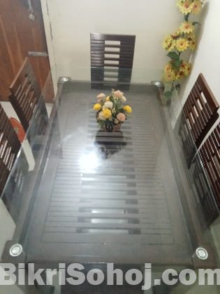 এই টেবিলটি 8 থেকে 9 মাস ব্যবহার করা হয়েছে। এই টেবিলটি বোর্ডের তৈরি। ১ টেবিল, ৬ চেয়ার আর রং কালো। এই টেবিলে হালকা দাগ রয়েছে যা ছবি দেখলেই বুঝতে পারবেন।