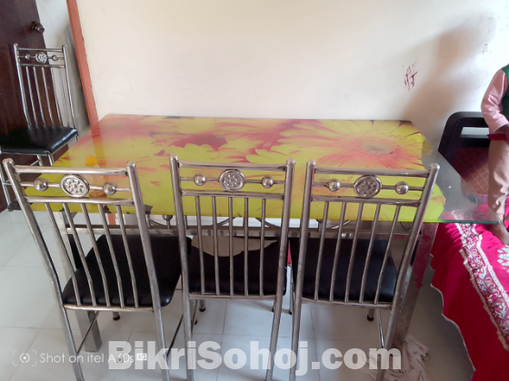 ডাইনিং টেবিল,, গ্লাস ১০ মিলি,, সাথে ৬ টি চেয়ার