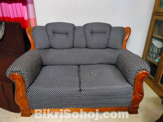পাঁচ সিটের সোফা সেট। একটি সোফার পিছে কিছুটা ইঁদুর কাটা সেটা বুঝা যায় না আর সমস্যা করে না। এছাড়া কোন সমস্যা নেই। আমরা ৪ বছর ব্যবহার করেছি। নতুন বাসায় সোফাটি মানানসই না হওয়ায় বেচে দিতে চাচ্ছি। কভার গুল ২ বছর এর কম ব্যবহার করছি।