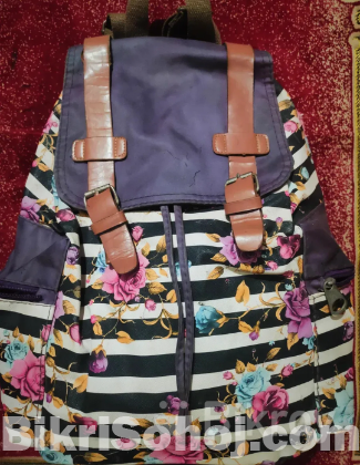 বিক্রির জন্য চমৎকার ডিজাইনের একটি লেডিস ব্যাকপ্যাক। এটি মূলত সাদা-কালো স্ট্রাইপ এবং রঙিন ফ্লোরাল (ফুল) প্রিন্টের কম্বিনেশন, যা দেখতে খুবই স্টাইলিশ। ব্যাগটি স্কুল, কলেজ, ইউনিভার্সিটি বা ভ্রমণের জন্য পারফেক্ট।