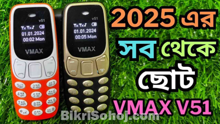 🌍 বিশ্বের সবচেয়ে ছোট ফোন – VMAX V51! 📱 ২০২5 সালের সবচেয়ে আকর্ষণীয় ও ছোট মোবাইল ফোন হলো VMAX V51। আধুনিক ডিজাইন এবং মিনি সাইজের এই ফোনটি সহজে হাতের মুঠোয় ধরা যায়, পকেট বা ব্যাগে রাখলেও কোনো ভারী অনুভূতি হয় না। যারা ছোট, হালকা ও স্টাইলিশ একটি ফোন খুঁজছেন, তাদের জন্য এটি একদম পারফেক্ট পছন্দ। 🔹 মূল বৈশিষ্ট্য: বিশ্বের সবচেয়ে ছোট ফোন ডিজাইন ক্রিস্টাল ক্লিয়ার ডিসপ্লে ডুয়াল সিম সাপোর্ট লাউড স্পিকার ও স্পষ্ট সাউন্ড কোয়ালিটি লং ব্যাটারি ব্যাকআপ সহজ অপারেশন ও ইউজার ফ্রেন্ডলি ইন্টারফেস 💎 অফিসিয়াল ওয়ারেন্টি: এই ফোনটির সাথে থাকছে ১ বছর অফিসিয়াল কাস্টমার ওয়ারেন্টি, যা আপনাকে দেয় নিশ্চিন্ত ব্যবহার অভিজ্ঞতা।