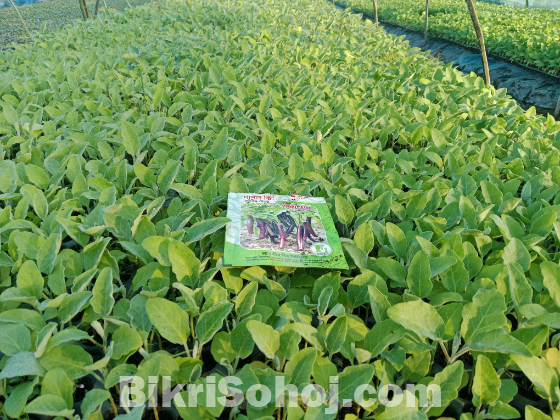 বেগুনের চারা জাত পাপন কিং লালতীর কোম্পানির সারা বছর চাষ করা যায় খেতে খুবই সুস্বাদু ফলের সাইজ ৬-৮ ইঞ্চি হয়ে থাকে বেগুনের গায়ের রং কালো বাজারে চাহিদা সারা বছর থাকে