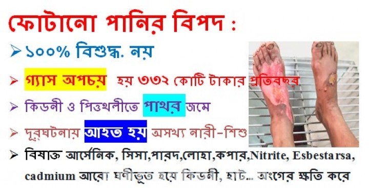 ৩) ১০০ % আর্সেনিক, সিসা,পারদ,লোহা,কপার,Nitrite, Esbestarsa, cadmium মুক্ত পানি