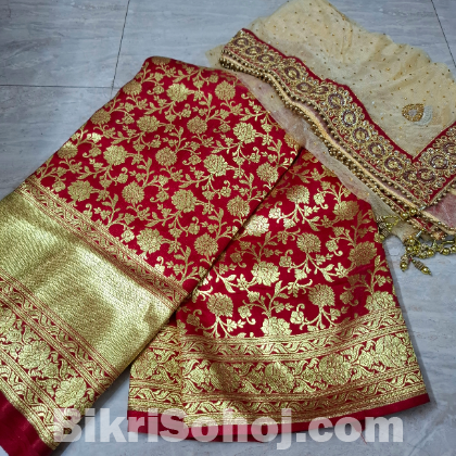 বেনারসি শাড়ি, উপহার দেওয়ার জন্য কেনা হয়েছিল। কখনো পরা হয়নি (সম্পূর্ণ নতুন/অব্যবহৃত)। বক্স ও দুপাট্টা আছে।