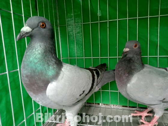 সম্পূর্ণ সুস্থ্য সবল একটি পেয়ার । প্রকৃত রেসার এর গুন সম্পূর্ণ একটি পেয়ার। খুবি ভালো ব্লাড লাইনের । লং ডিসটেন্ট নিয়ে উড়ে । নিউ এডাল্ট। এখন পযর্ন্ত ডিম বাচ্চা করেনি ।