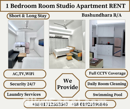 1BHk Furnished Serviced Apartment RENT in Bashundhara R/A. Short-Term Rentals with Kitchen, TV, Refrigerator, WiFi, Microwave oven, A/C.