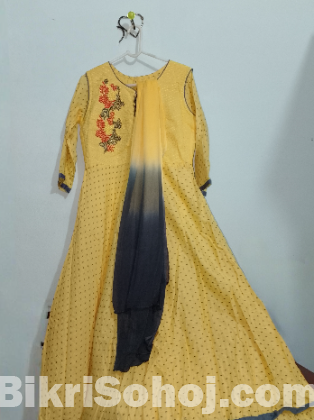 Its a Thrift product. It has a little stain in te skirt portion. No pant with this dress. It has a Chiffon Dupatta. Please watch all tge photos. And choose it for you if you like it. Don't get late.