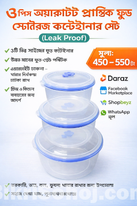 ৩ পিস এয়ারটাইট ফুড স্টোরেজ কন্টেইনার সেট | Leak Proof | কিচেন ও ফ্রিজের জন্য আদর্শ