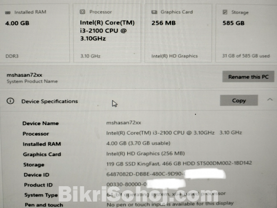 Processor: Intel Core i3-2100 (3.10 GHz)