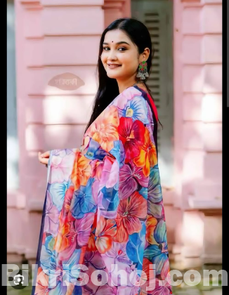 এটি একটি অত্যন্ত আকর্ষণীয় সিল্ক শাড়ি, যার গায়ে রঙিন ফুলের মনোমুগ্ধকর ডিজাইন করা আছে। প্রতিটি ফুলের প্যাটার্ন শাড়িটিকে করেছে আরও বর্ণিল ও আভিজাত্যময়। হালকা ও আরামদায়ক এই সিল্ক শাড়িটি আপনাকে দিবে স্টাইলিশ লুক এবং যেকোনো উৎসব বা পার্টিতে আলাদা করে তুলবে। - শাড়ির সাথে থাকছে ম্যাচিং ব্লাউজ পিস, যা আপনার সাজকে করবে আরও সম্পূর্ণ ও গ্ল্যামারাস। - বিশেষত্বঃ প্রিমিয়াম কোয়ালিটির সিল্ক ফেব্রিক রঙিন ফুলেল ডিজাইন আকর্ষণীয় ও আরামদায়ক পরিধানযোগ্য উৎসব, পার্টি ও বিশেষ অনুষ্ঠানের জন্য উপযোগী