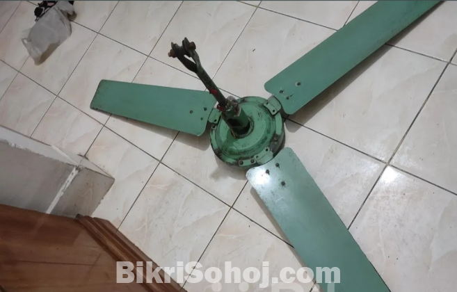 সবুজ রঙের একটি সিলিং ফ্যান ।ফ্যানটির বাতাস তীব্র।
