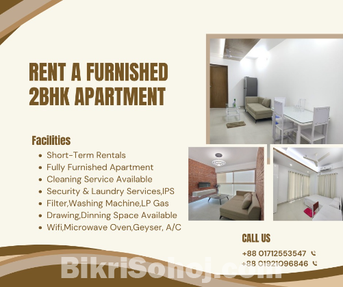 đĄ Live comfortably in the heart of Bashundhara R/A with all modern amenities! ⨠Apartment Features & Amenities: â Fully Furnished with Elegant Drawing & Dining Areas â 2 Cozy Bedrooms with Beds, Wardrobes & Sofas â Room Cleaning & Professional Laundry Services â High-Speed WiFi, Smart TV, Air Conditioner â Modern Kitchen: Microwave, Refrigerator, LP Gas Stove â 24/7 Security Service & Full Generator Backup â Washing Machine & Water Heater (Geyser) â Prime Location in Banani â Close to Restaurants, Offices & Shopping đ Location: Bashundhara R/A, Dhaka đ For Booking & Inquiries: đ˛ +8801712553547 đ˛ +8801711993377 đŠ Call now to book your stay! Ideal for short stays, business trips, or a comfortable family living experience.