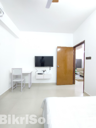 Furnished 2Bed Room Serviced Apartment RENT in Bashundhara R/A. Short-Term Rentals are available with Kitchen, TV, Geyser, Refrigerator, WiFi, Microwave oven, A/C.