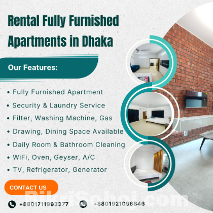 Furnished 2BHK Serviced Apartment RENT in Baridhara. Rent are available with Kitchen, TV, Geyser, Refrigerator, WiFi, Microwave oven, A/C.