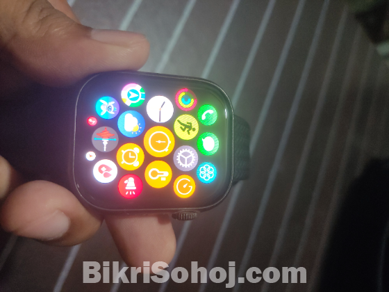 Screen/Display Size 2.02 Inches Display Type AMOLED Screen Display Resolution (Pixel) 485 × 520 pixel, 240MHz+48MHz high brush screen Display Refresh Rate (Hz) 60 Hz Manual Brightness Control Support Auto Brightness Control No Always ON Display Yes (Only analog AOD available) Total Watch Faces 100+ Watch Faces Customized Watch Faces Support Multi Touch Full touch screen Design Body Material Metal Bottom Shell Polycarbonate Dial Shape Square Number of Straps 1 straps Strap/Band Materials Silicon Strap Width 45mm Band Detachable Yes শুধু ক্রাউন বাটন টা কাজ করে না বাকি সব ঠিক আছে কোনো সমস্যা নাই ডিসপ্লে তেও কোনো দাগ না অন্য কোন সমস্যা নাই। বক্স ও অরিনাল ওয়ারলেস ম্যাগনেটিক চার্জার ও সিলিকন কেস ও সাথে থাকছে। অনেক যত্নে ব্যবহার করেছি কিন্তু টাকা লাগবে তাই সেল করছি।