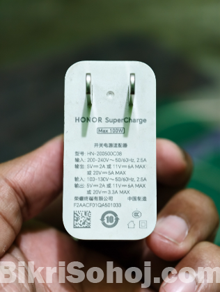 Selling my authentic Honor 100W Original Charger (Honor 200). I purchased the phone recently and used it for only a few days before unfortunately losing my phone. Since I no longer have the device, I have no use for this high-speed brick.