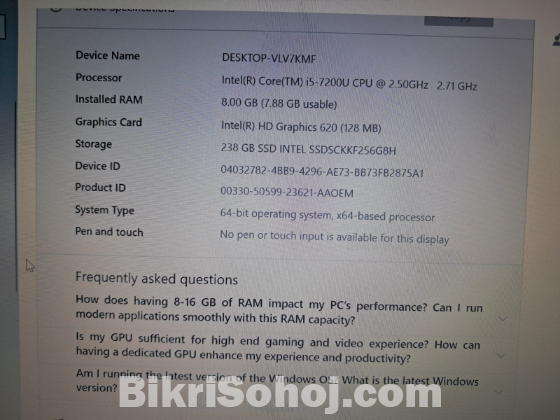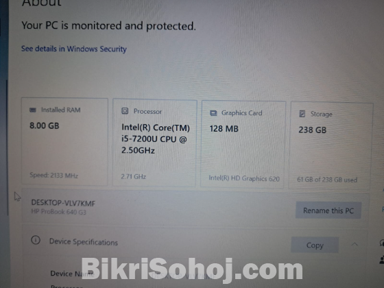HP Proo Book. Processor i5. 7th Gen. Ram 8 GB, Room, 238 GB. একদম ফ্রেশ। ৪/৫ মাস ব্যবহার করেছি। ডেক্সটপ কিনবো তাই বিক্রি করছি। সাথে কী-বোর্ড, মাউস, মাউসপ্যাড, চার্জার ও hp কোম্পানির একটি ব্যাগ গিফট পাবেন।