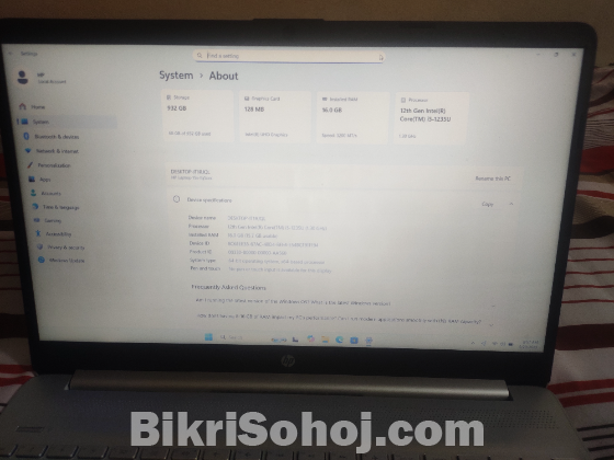 Hp Laptop. i 5 12 gen 16GB Ram.New condition.No problem. Only need money.