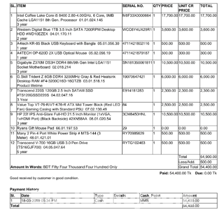 The remaining details are given on the invoice.
