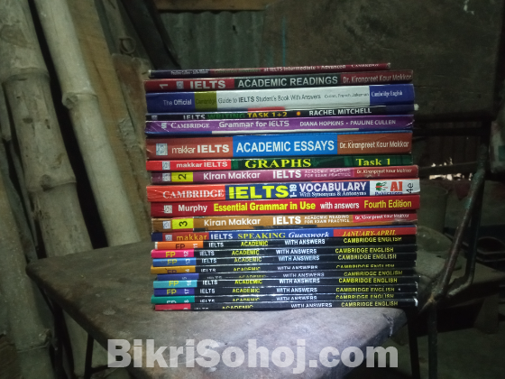 IELTS পরীক্ষার সম্পূর্ণ প্রস্তুতির জন্য প্রয়োজনীয় প্রায় সব বই একসাথে বিক্রি করা হচ্ছে। Cambridge ও Makkar সিরিজের বইগুলো রয়েছে, যা Reading, Writing, Speaking, Grammar, Vocabulary ও Graphs—সব সেকশন কভার করে।