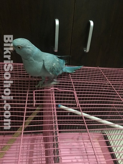 Approximately 11 month male Blue Ring Neck Parrot. Healthy Bird