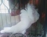 One pure white feathered beautiful Jacobin with unique appearance, head is completely hidden behind it’s splendid hood.
