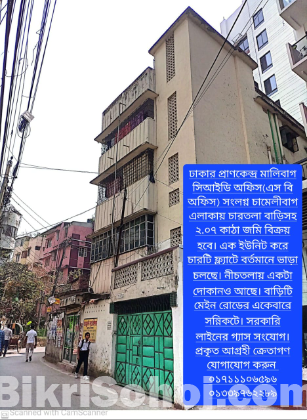 4 storied building with 2.07 katha land including a shop in the ground floor at chamelibag,Shantinagar, Dhaka just adjacent to CID / SB office. Each floor is of around 1100 sq ft including 3 beds & 3 bath( 1 servant bath)