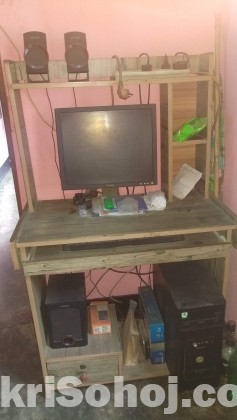 I3 4th gen,5 gb hard drive,,2gb ram,, 14" original dell monitor with speakers & a computer table shown the pic