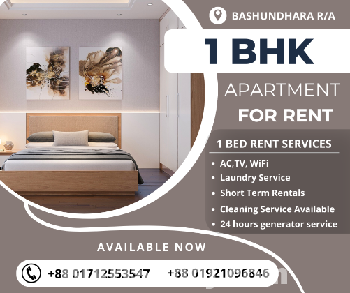 Furnished One Bedroom Apartment for a Premium Experience Rent in Bashundhara R/A. Short-Term Rentals are available with Kitchen, TV, Geyser, Refrigerator, WiFi, Microwave oven, A/C.