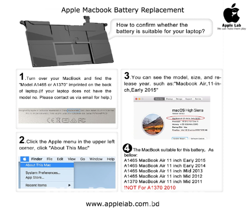 Please Note: MacBook Air 11" A1370 Laptops has 2 different battery models, one battery part number is A1375, another one battery part number is A1406. A1406 battery is for MacBook Air 11" A1370 (Late 2011 version), A1375 battery is for MacBook Air" A1370 (Late 2010 version).