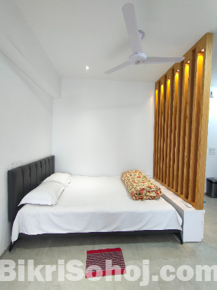 Furnished 2 Bedroom Serviced Apartment RENT in Baridhara. Short-Term Rentals are available with Kitchen, TV, Geyser, Refrigerator, WiFi, Microwave oven, A/C.