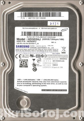 Samsung 320GB SATA DESKTOP HARDDISK MIXED KOREAN