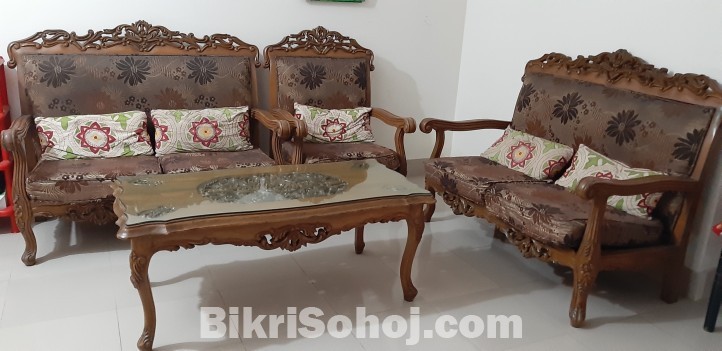 Original chittagong segun wood sofa with gorgeous a table. 8 years used. 2:2:1