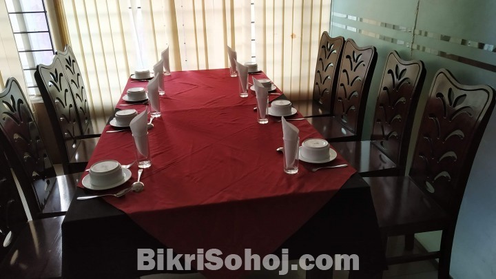 ১৫ টি টেবিল এবং ৬০ টি চেয়ার। ১ টি টেবিলের সাথে ৪ টি চেয়ার। কেউ আলাদা কিনতে চাইলে আলাদা কিনতে পারবেন। প্রতি টেবিলের সাথে ২ টি করে টেবিল ক্লথ আছে। কালো এবং মেরুন রঙের। দামাদামি করা হবে না। এক দাম। নিতে চাইলে যোগাযোগ করুন ৭ দিনের মধ্যে।