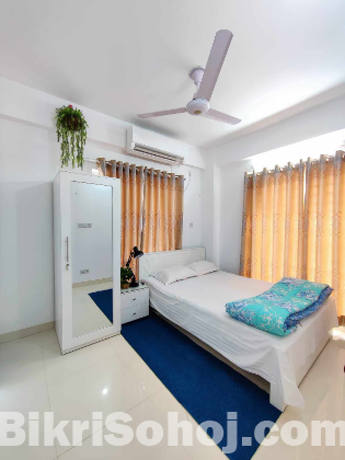 Furnished 2BHK Serviced Apartment RENT in Bashundhara R/A. Short-Term Rentals are available with Kitchen, TV, Geyser, Refrigerator, WiFi, Microwave oven, A/C.