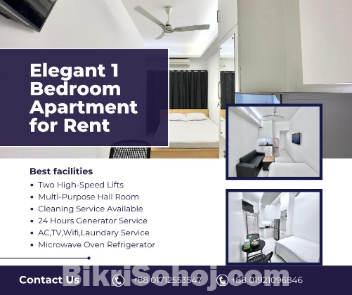 Two Room Furnished Studio Apartment RENT in Bashundhara R/A. Short-Term Rentals with Kitchen, TV, Refrigerator, WiFi, Microwave oven, A/C.
