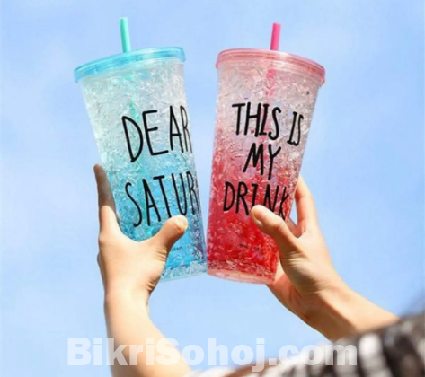 Coloring Slider Double Wall Insulated Summer Water & Juice Pots Ice Straw Cup for Fruit Juice -Multicolour