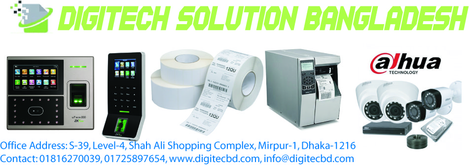 Digitech Solution Bangladesh deals in different aspects of IT, Security & Bar-code Solutions e.g. Time Attendance & Access control System (Finger print, RFID, Face detection), Video surveillance, Barcode/Label printer, ID Card Printer, POS Printer, Barcode Label & Ribbon, ID Card Ribbon, RFID & PVC Card, Handheld Metal Detector, Walk-Through metal Detector, Tripod Turnstile Gate, System Integrations with third party Software. The company has specialized its resources accordingly with technology trends and partnered with world renowned brands to fulfill its mission to be a leader in the country.